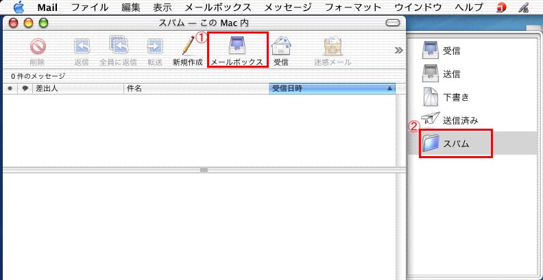 3.「スパム」メールボックスが作成されていることを確認