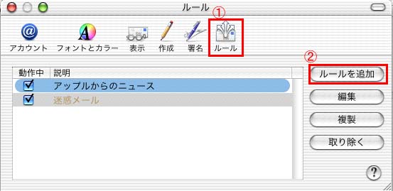 ※既に「迷惑メール」というルールがありますが、これは初期から存在するルールであり今回作成するものとは別物です。